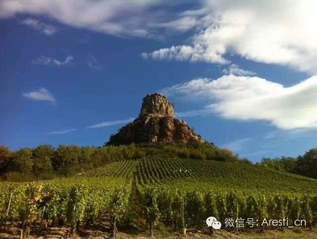普伊富赛(Pouilly Fuisse)位于勃艮第南部马孔内产区(Maconnais),是一片波浪状石灰岩丘陵地,富含碱性粘土。罗宏酒庄的葡萄园位于普伊富赛地标Roche de Solutre石头断崖旁边。2万年前,早期人类曾利用这里独特的地形狩猎:猎手们从四面将猎物驱赶至断崖之上,然后不断大喊、敲打树干,受到惊吓的野马、野鹿们无处逃生,纷纷坠落悬崖……如今,这片土地早已恢复宁静,到处是美丽的葡萄园,以出产饱满、浓郁的高品质干白葡萄酒闻名于世。